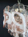 Experience the breathtaking elegance of the Vintage Murano Pink Glasses Chandelier. Handcrafted with glass sheets and a sturdy metal frame, this chandelier boasts a striking blend of transparent and Pink hues, making it a truly one-of-a-kind piece.