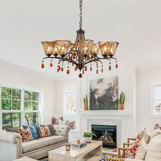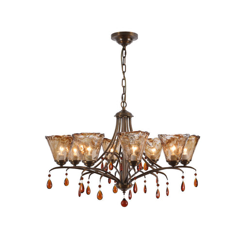 A true statement piece, the Rosalind Murano Amber Chandelier brings sophisticated charm and warmth into your space. Crafted from exquisite Murano g...
