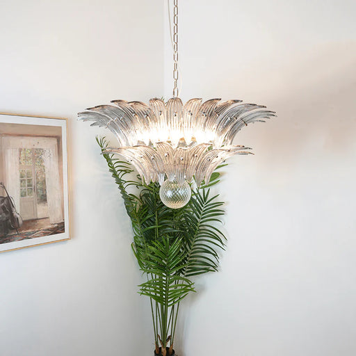 Murano Palmette glass Transparent Chandelier, Elegant style blended into one. This impressive chandelier is composed of clear glass that create a ...