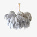 As part of our exclusive feather lamp series, our feather Chandeliers are finished with ostrich feathers and a brass metal base.