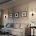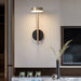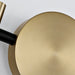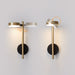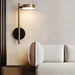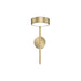 The Elara Wall Lamp pairs clean geometric lines with warm metallic tones for a striking contemporary design. With its circular centerpiece and slim linear frame, this wall lamp offers both functional lighting and sculptural appeal, making it perfect for hallways or as a bedside fixture.