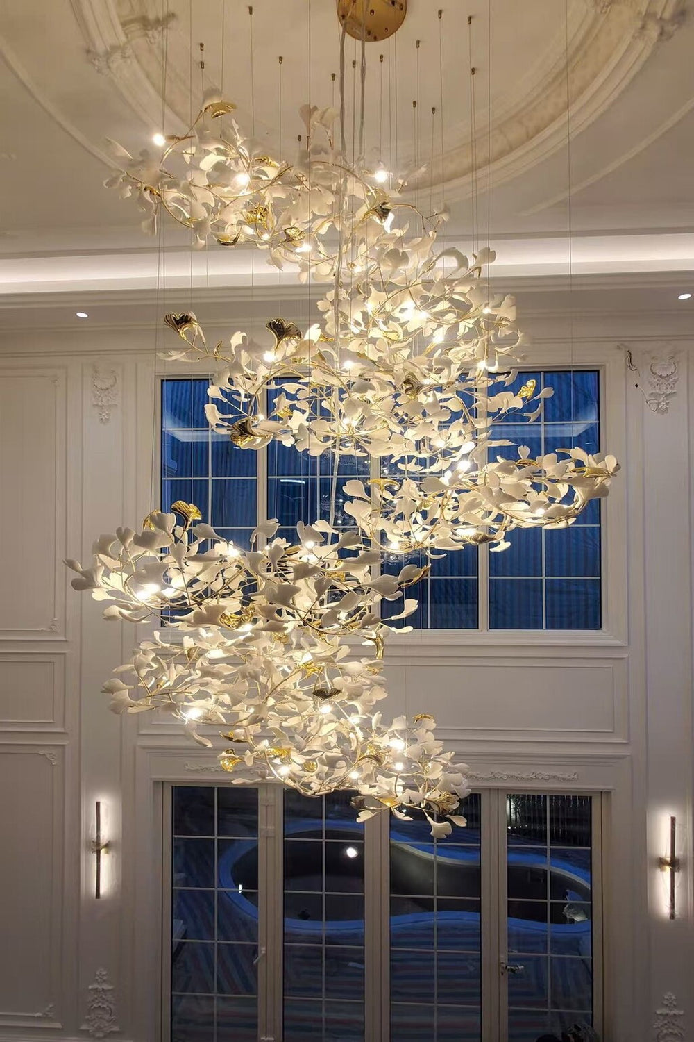 This ceramic ginkgo tree petal chandelier shows its luxurious style in overall design, material, and manufacturing technology. The metal lamp body ...
