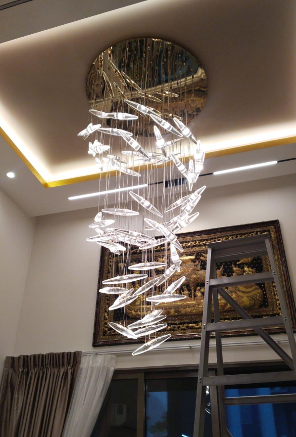 Elevate your landed home with a statement staircase chandelier designed for grand double volume spaces. At DWHome, we specialize in staircase and double volume chandelier projects in Singapore, with extensive experience in both design selection and on-site installation planning. From elegant contemporary pieces to fully customized creations, we help homeowners achieve a lighting feature that is proportionate, striking, and tailored to their space. Below are some of our case studies showcasing completed projects and custom possibilities.