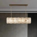 Expertly crafted with Spanish imported marble and stunning copper, our Natural Marble Rectangular Chandelier is the perfect addition to any dining room. Elevate your space with this luxurious and elegant statement piece.