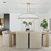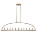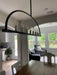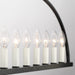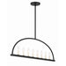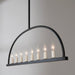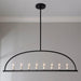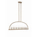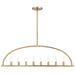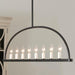 The Abbott linear chandelier presents a simple, streamlined shape and clean lines. The open-concept frame features a metal arch and a sleek, narrow rod with a series of thin bulbs. Mounted above an island or over a dining room table, this fixture appeals to a minimalist sense of style and comes with both white and gold candle sleeves. The Abbott comes in vibrant gold and black finish.