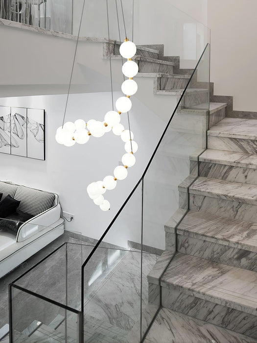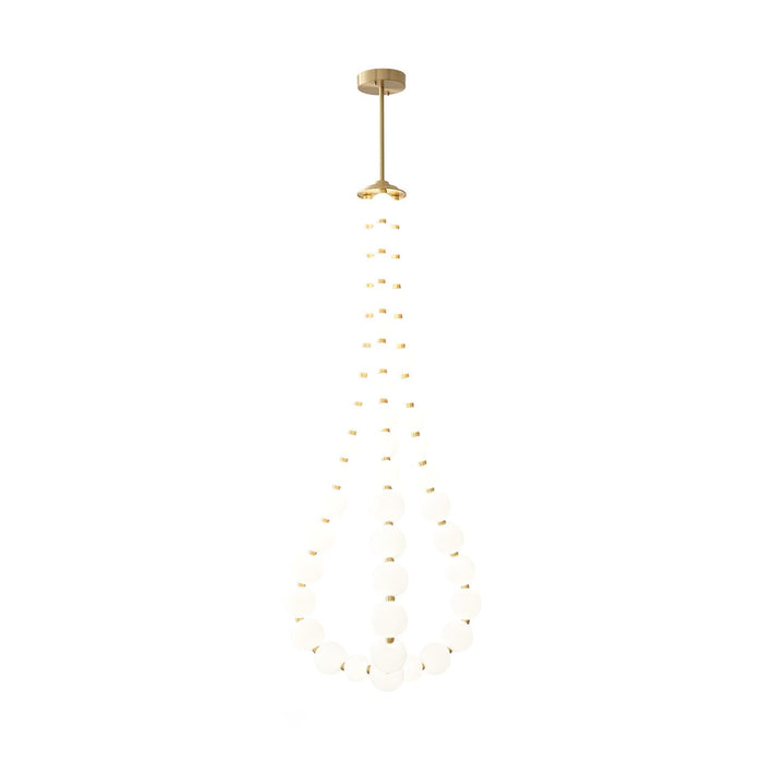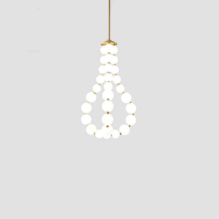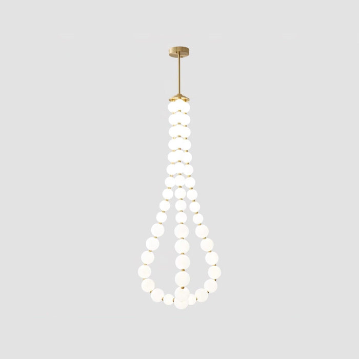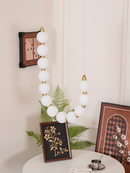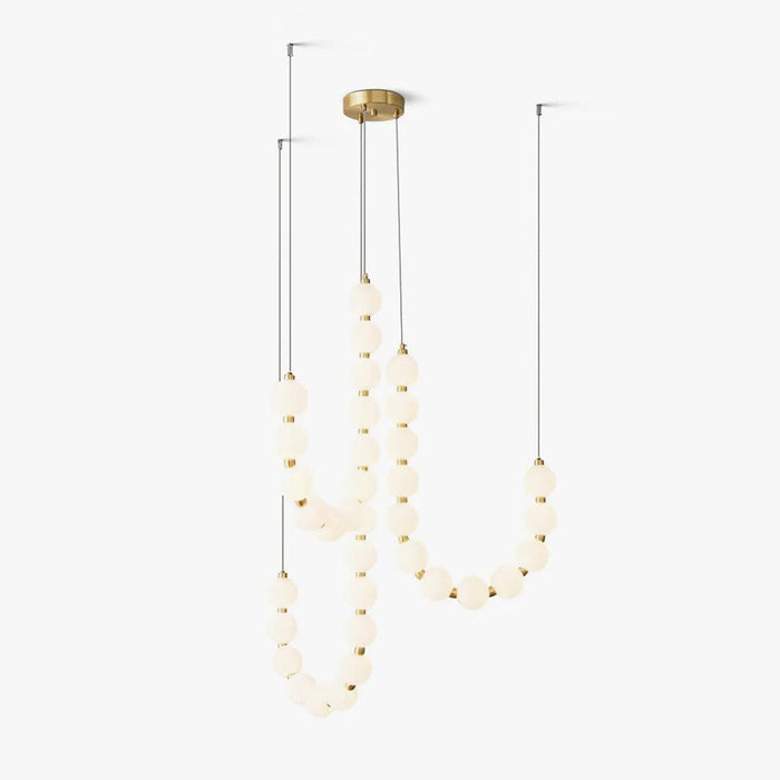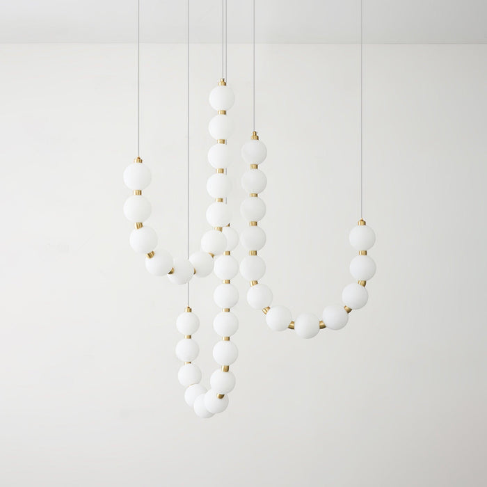 This stylish Pearl Necklace Chandelier illuminates any space with a brass-constructed base and white plastic orbs. Its unique design will draw admiration and attention, merging a distinctive style with universal and timeless appeal. Its unique lighting forms will highlight the interior of your home, creating a warm, cozy atmosphere for gatherings and quality time with family.