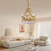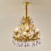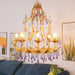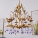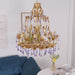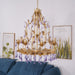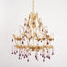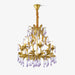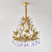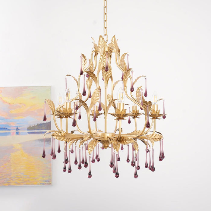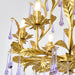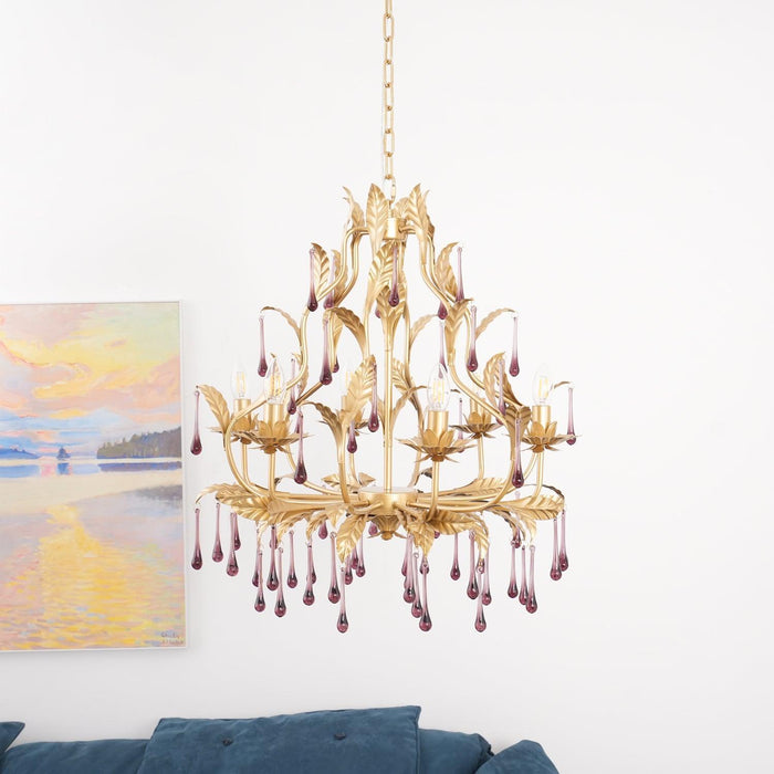 This exquisite chandelier boasts a unique design, blending radiant purple glass with gold-colored leaves. The purple crystal pendants shimmer brilliantly, exuding an ambiance of elegance and sophistication, complemented by the intricately detailed gold leaves. Drawing inspiration from nature, the golden foliage adds a touch of opulence to the entire piece. The overall design not only exudes luxury but also seamlessly integrates with modern home décor, serving as a standout feature in any space.