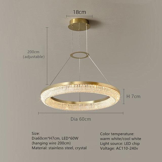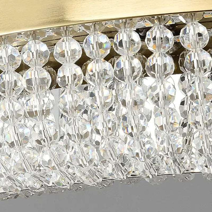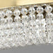 A luxurious addition to your modern home. This modern chandelier captivates with its intricate design and brilliant crystal beads. Showcasing a brushed gold finish, it adds a touch of elegance to any space. Perfect for the living room, dining room or foyer, this chandelier is sure to impress your guests.