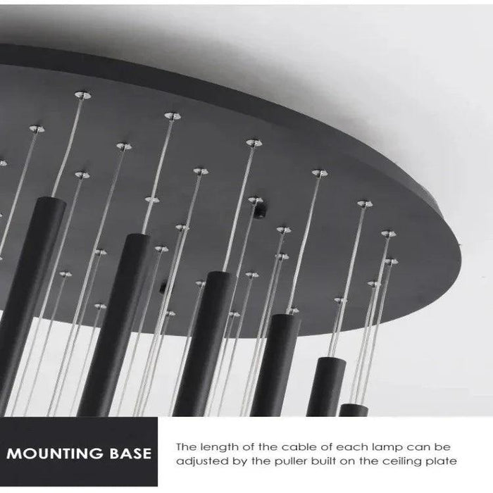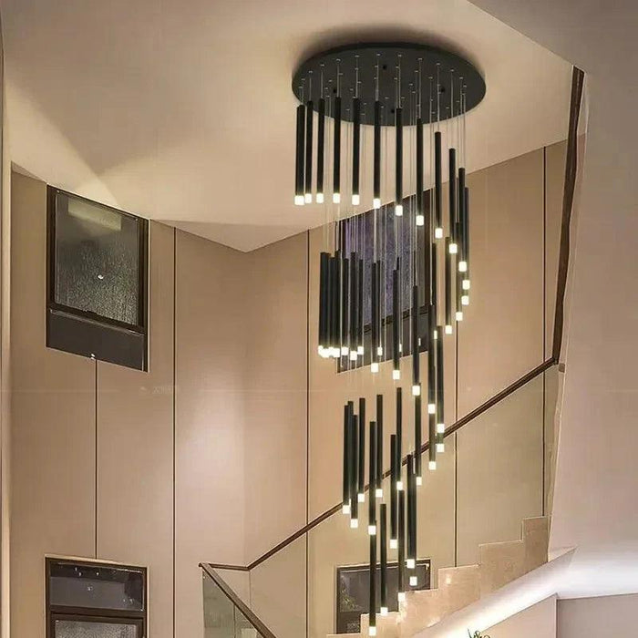 Black Modern Minimalist Stick Chandelier is a sleek and sophisticated lighting solution designed to complement a wide range of modern interiors. Ideal for spaces with high ceilings such as staircases, foyers, living rooms, stairwells, entryways, duplex homes, hotels, restaurants, and bars, this chandelier brings a contemporary flair to any setting.
