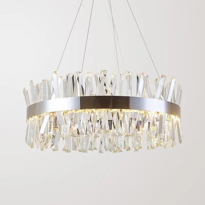 Elevate your modern living space with the Calvi Modern Chandelier, a sophisticated blend of classical elegance and contemporary design. Crafted from premium stainless steel and handmade clear crystals, this chandelier adds a touch of luxury and style to any room. Its sleek and understated design makes it a perfect accent for various interior settings, providing both aesthetic appeal and functional illumination.