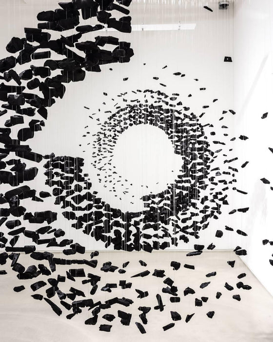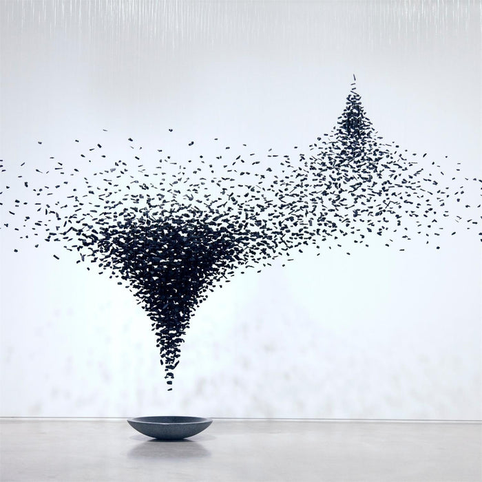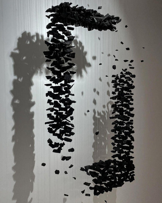 What begins with a single lump of charcoal extends into a line and then expands to fill a space. The design artist uses charcoal, with its dualistic connotations of creation and destruction, to suggest that everything in the world is connected and that the entire universe is contained within a single point. The implications are simple and clear.