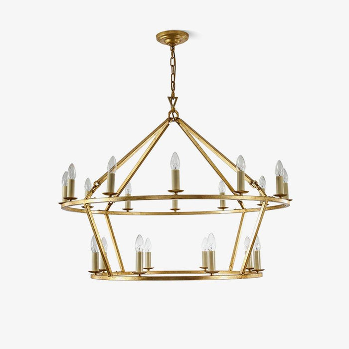 The Darlana Chandelier boasts a durable wrought brass finish and a classic Wagon Wheel shape, making it a refined choice for any interior. With 20 lights, this chandelier offers a clean and elegant silhouette that will elevate any space. It seamlessly blends traditional, transitional, and contemporary styles, making it a versatile and timeless addition to your home.