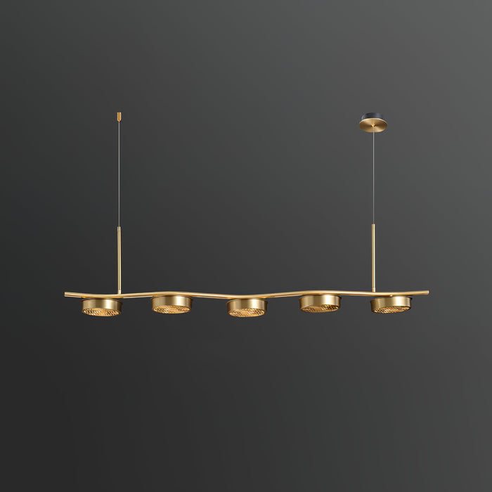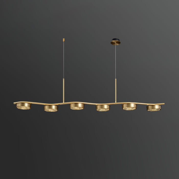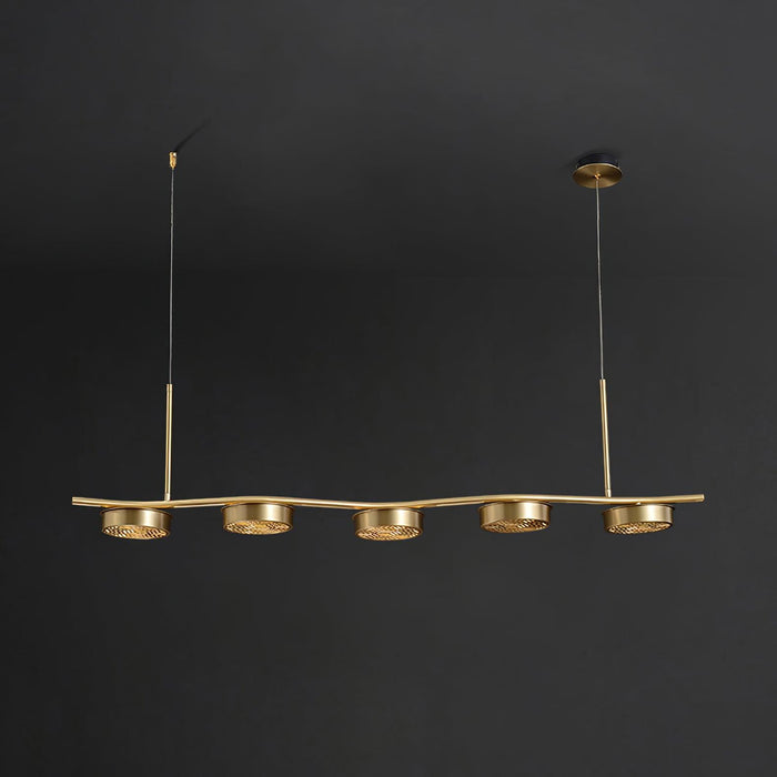 The Eichholtz Aldo Chandelier offers sleek contemporary styling and excellent lighting. This mid-century modern style 6 light ceiling pendant is sure to take center stage with its series of rings in an aged brass finish.