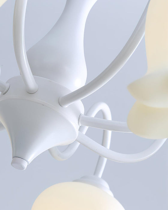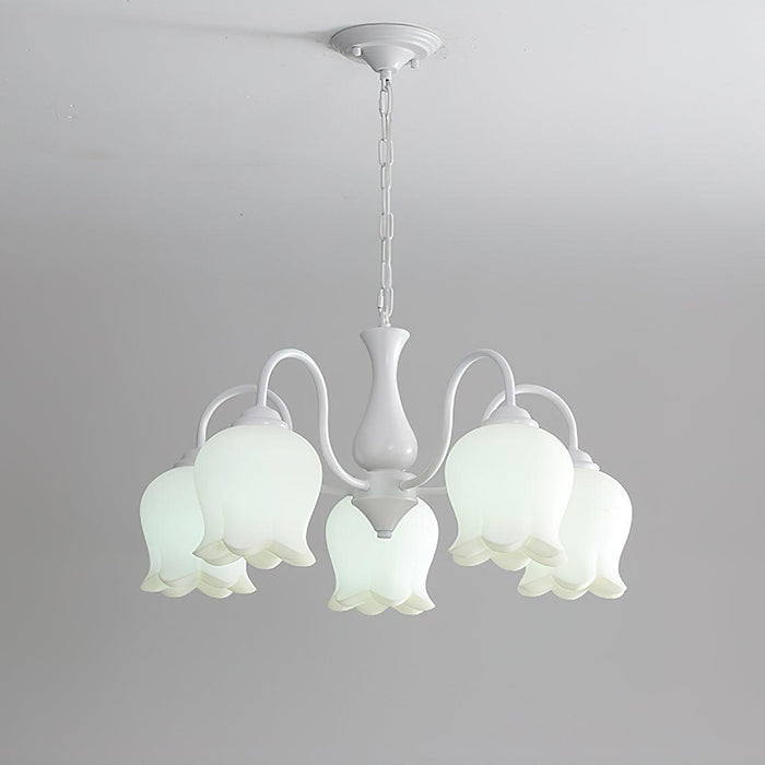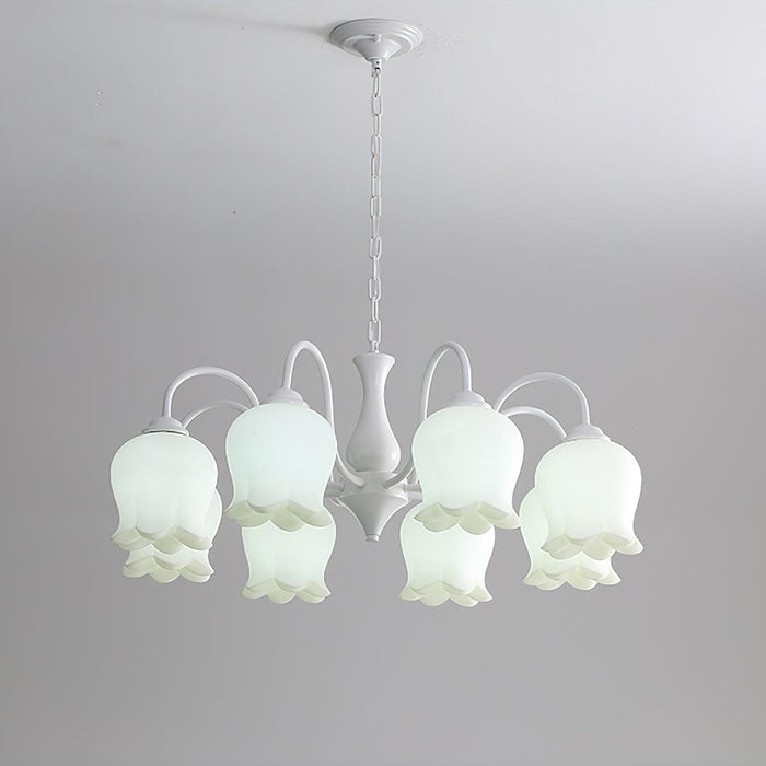 The Elegant Lilium Chandelier brings an old-world charm to any room. Its vintage-inspired French lily-shaped matte PE lampshade is crafted with exquisite garland-style detailing, making it a perfect choice for classic style lighting.<
