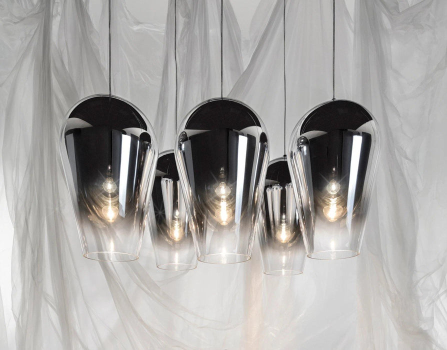 A blow-molded polycarbonate light cannon, FadeÕs teardrop shape focuses the lightbulb's output into a satisfyingly round and luminous circle, acting as the ultimate oversized spotlight. The metalized finish is unusual as it graduates from completely reflective to transparent in an even fade along the body of the light.
