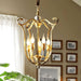 Enhance your home decor with our Mid-Century Modern 3-Light Lantern Island Chandelier. This stunning chandelier combines vintage candleholder features with modern elements to create a functional work of art. The gorgeous gold finish adds a touch of elegance to any room. With three candelabra-style bulbs, it provides soft lighting and charming style. Perfect for foyers, patios, porches, dining rooms, living rooms, and bedrooms.