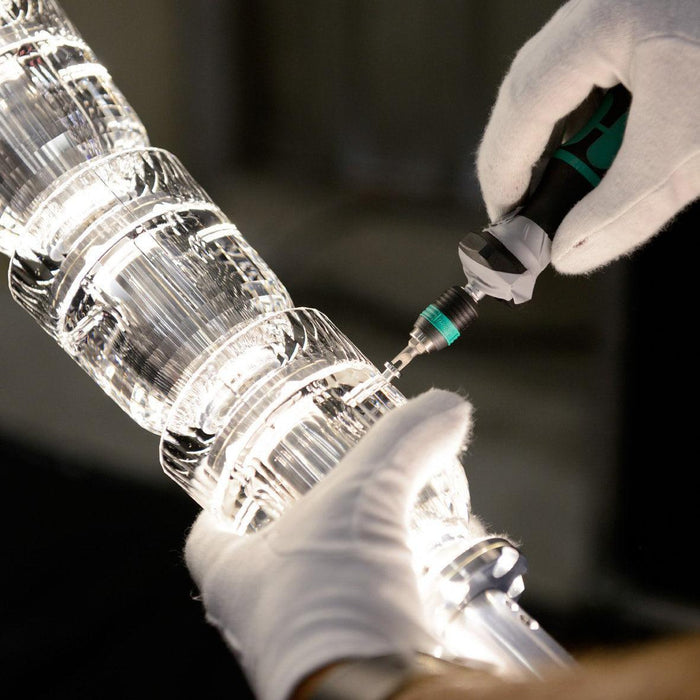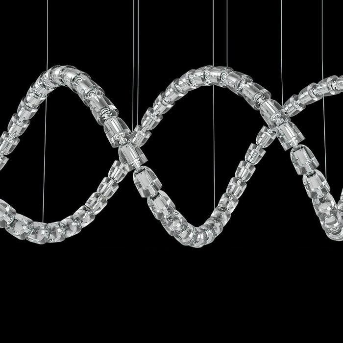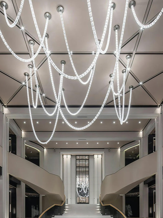 Gabriel Chandelier J uses a coiled and intertwined design to show the charming essence of the snake shape. The fixture's structure features a series of segments, each carefully connected to resemble a snake's scales, creating a dynamic interplay of light and shadow. The chandelier hangs elegantly from the ceiling, its loops and curves suggesting the meandering path of a snake in motion, giving the impression that it is ever ready to relax. The integration of light in these sections casts a warm and inviting glow, accentuating the fluidity of the design and injecting an organic, vibrant air into the modern space.