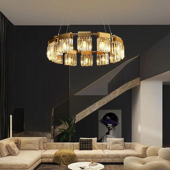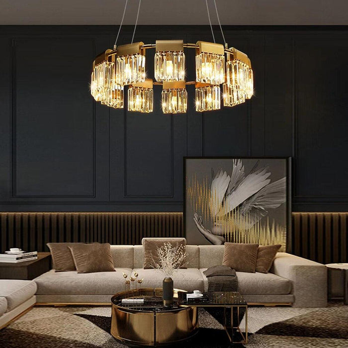 This beautiful Gio Collection chandelier features a modern design adorned with handmade crystals. Its shimmering crystals will add subtle sophistication to any space and the modern design ensures the piece will fit perfectly with any decor. Enjoy a perfect balance of form and function with this stunning chandelier.
