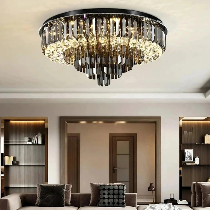 Add a touch of luxury to any room with the Gio Crystal Ceiling Light. The smoke grey crystals and stainless steel construction create a stunning and elegant design. Perfect for low ceilings, this chandelier will elevate the look of your space while providing a warm and inviting atmosphere.