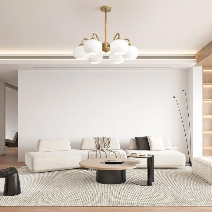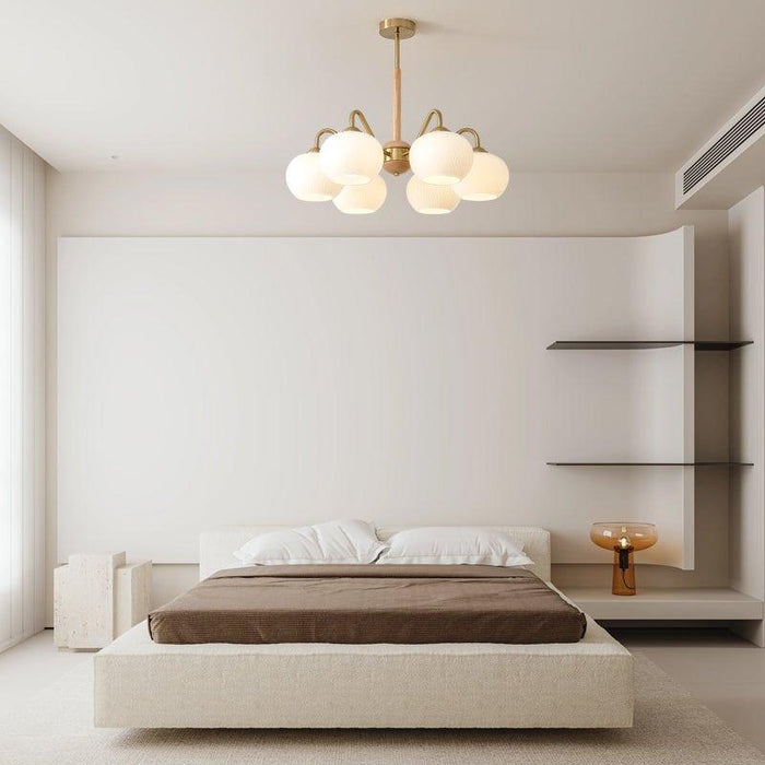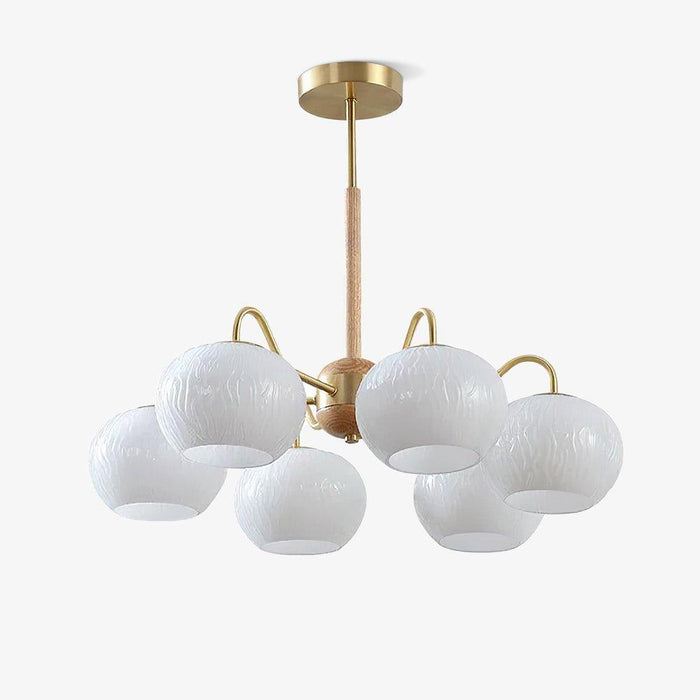 This chandelier is a wonderful example of Vakkerlight ornamentation. The arms of the chandelier are made of brass tubes and bent by hand, while the ornaments lightshade are cast and carefully refined by vakkerlight craftsmen. For added brilliance, the luminaire is finished with a brass surface, which enlivens the entire chandelier and highlights the precious details.