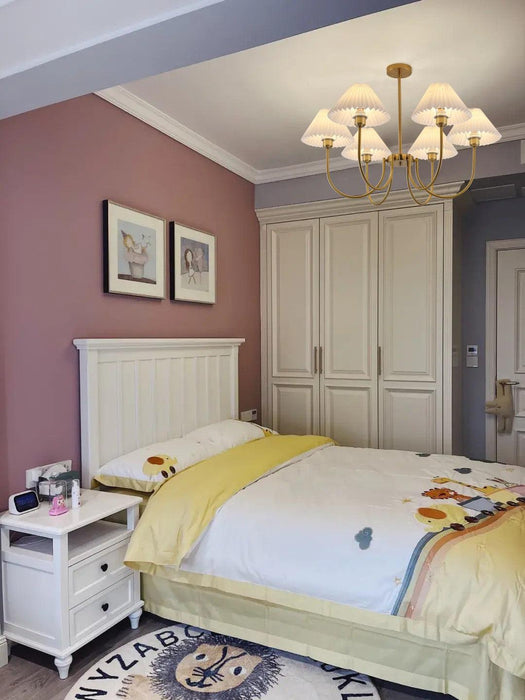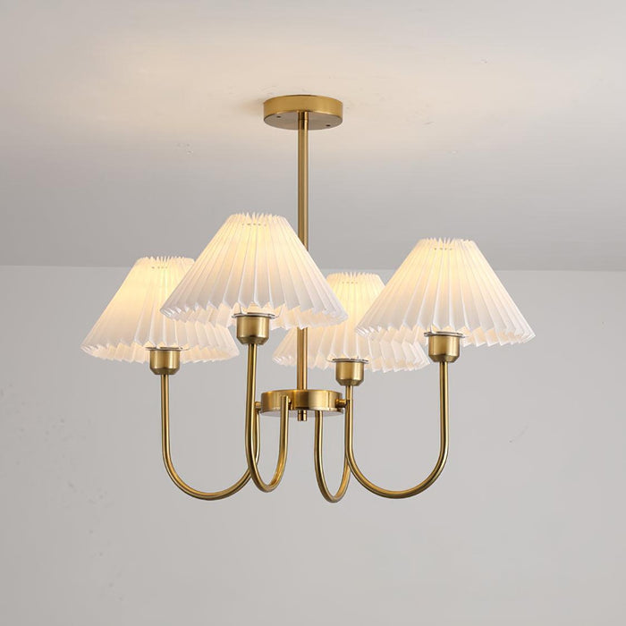 Inspired by colonial revival design, Lenore fancies herself a history buff, drawing from the past to inform her classic silhouette. Sweeping, elegant arms extend to candlestick fixtures, topped with Linen pleated lampshade. Equal parts formal and flouncy, Lenore's chandelier style is understatedly whimsical—perfect for dinner party guests to admire.