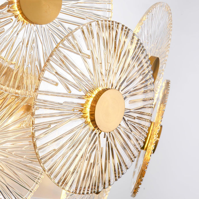 The Maytoni Aster Chandelier adds an elegant touch to any room. Its metal and transparent glass construction creates a pleasant, diffused light when lit, with beautiful brass details that add a unique decorative element. Perfect for your living room or above your dining table.