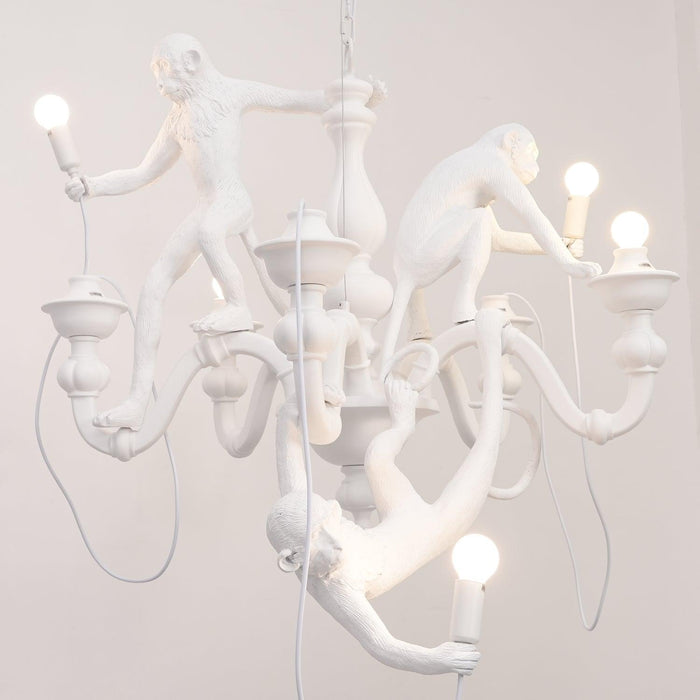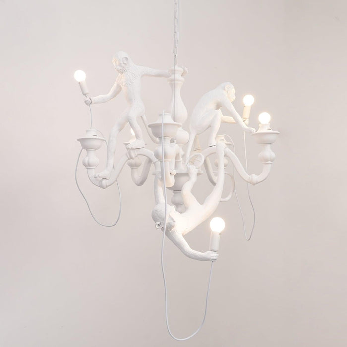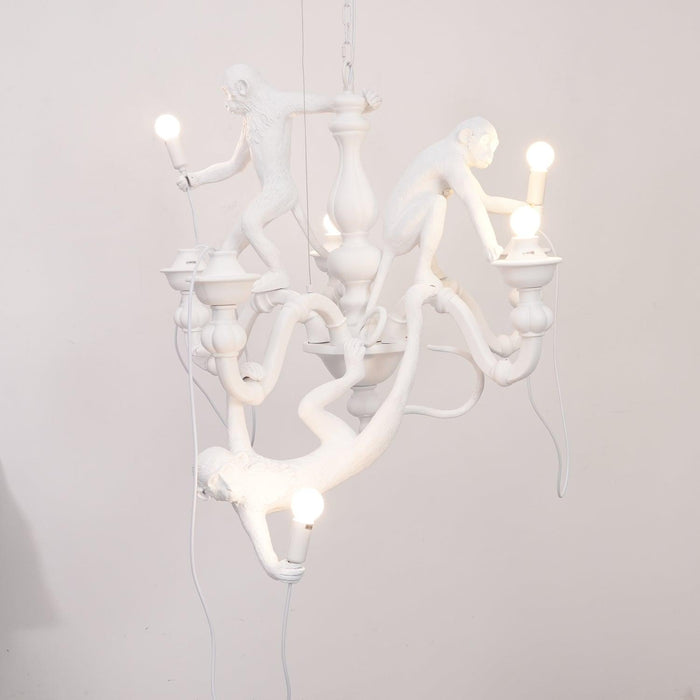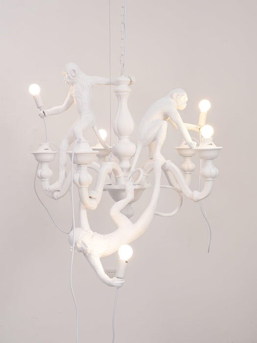 Bold and functional, the Monkey Chandelier brings humour, fun and warm light to any environment. The three little monkeys took over an entire chandelier! Unconventional in its white splendour, the Monkey chandelier is simply perfect for rooms out of the ordinary.