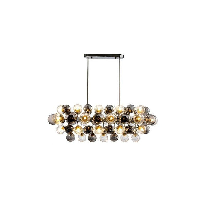 This unique designer glass dining room chandelier is crafted with careful attention to detail. Its hand-blown glass bubbles create an eye-catching and uniquely stylish focal point that will make your home stand out. Each individual sphere, carefully crafted to perfection, is an exceptional and timeless piece of art.
