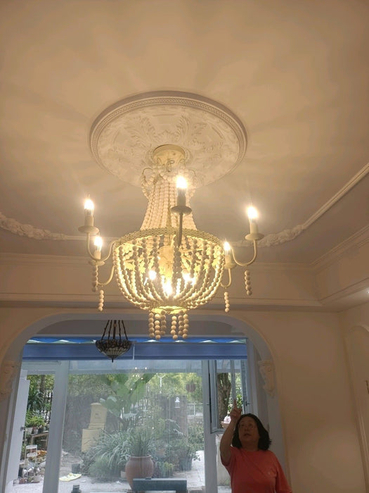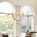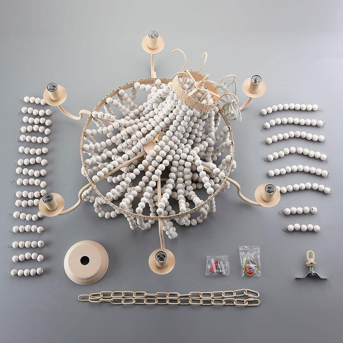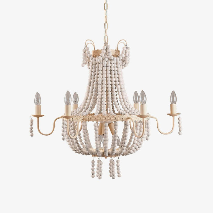 Constructed of painted metal, this Regas chandelier is a subtle accent piece that allows you to add an artsy design element without overpowering the rest of your home decor. Its stunning use of ample and plump wooden beads makes this chandelier more ornate. The exposed candelabra lights with curving arms add a classic and timeless appeal. Lit or not, it will be an eye-catching masterpiece in your home decor.