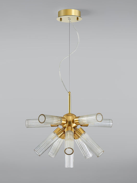 If you are looking to add an element of drama into your home then look no further than this sputnik chandelier. Beautifully crafted from linear detail flawless Acrylic tubes that allow the light to diffuse through and mixed in with contrasting detail stems to create a striking feature for the center of any room.
