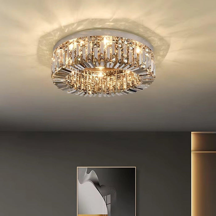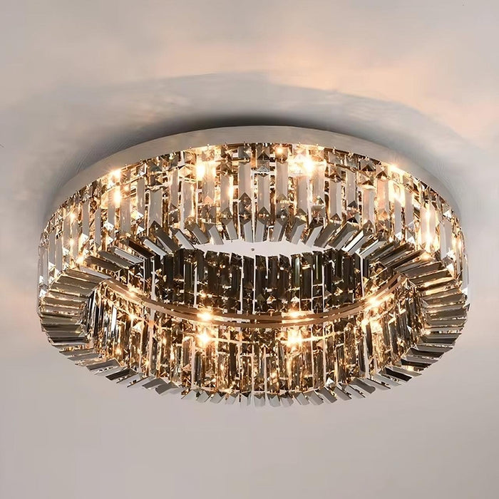 The shimmering smoke grey crystal diffuses a warm, inviting glow, creating a serene ambiance. Crafted from high-quality stainless steel, this flush mount fixture is built to last and seamlessly integrates with your existing decor. Plus, the included LED bulbs provide long-lasting, energy-efficient illumination. Whether you're updating your living room, dining space, or master bedroom, this stunning ceiling light will elevate your space.