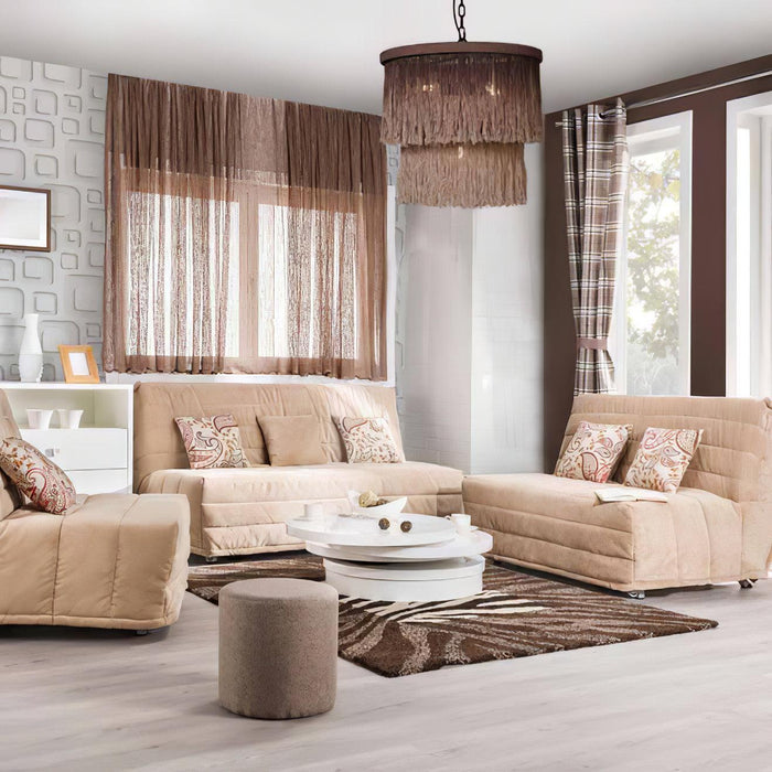 It is a ravishing tassel style round chandelier that looks fabulous in contemporary or rustic spaces. Featuring 2 tiers tassel accent, it will bring a dreamy atmosphere when it dances in the wind. This rustic chandelier hosts four bulbs in the center to provide a warm, ambient glow and it casts a beautiful patterned shadow throughout the room. Comes with a premium metal frame to combine with ombre cotton thread, it not only ensures its durability but also showcases a conspicuous appearance.