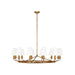 Referencing throwback decorative motifs, the Ziba Chandelier from Radilum is an easy-going luminaire, highlighted by its repeating organic forms. The modern design is easy to appreciate over the dining table, living space, or foyer. Crafted in brass, the chandelier’s framework looks dashing with a ring frame topped with angular arms. Evoking water drop shapes, the lamp holders above look elegant against the classic cone linen shades. These shades calm the light into a surrounding aura.
